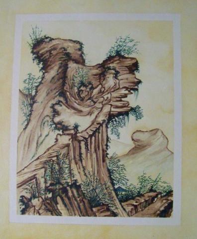 The painting captures a serene and natural landscape, where the intricate details of an aged tree take center stage. The tree, with its gnarled and twisted bark, stands as a testament to the passage of time, its branches adorned with lush greenery that breathes life into the composition. The background is minimalistic yet harmonious, featuring subtle elements of nature that complement the majestic presence of the tree. The artwork evokes a sense of tranquility and timelessness, framed within white borders on a beige background, giving it an elegant finish.