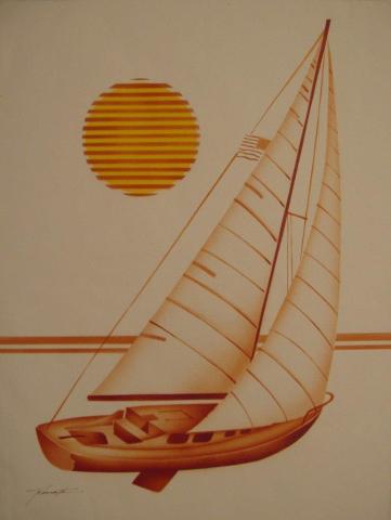 Sailing in the Sunset: This painting depicts a serene scene of a sailboat gliding on calm waters under the golden sun. The boat, with its sails fully extended, captures the essence of peaceful solitude. The artist uses warm tones to create a sense of harmony and tranquility. The simplicity of the composition, combined with the meticulous detailing of the boat and sails, evokes a sense of elegance and grace.
